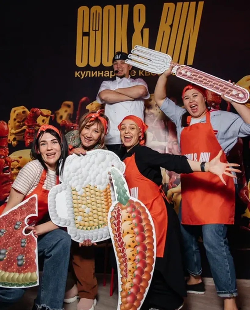 Cook&Run - это культовое место в Омске, где дети или взрослые проходят нестандартные кулинарные испытания по мотивам известных ТВ-Шоу. Фирменная форма, стилизованное игровое пространство и реквизит, уникальные атрибуты, харизматичные Су-шефы и грозный Шеф, превращают Ваш день рождения или корпоратив в настоящее телевизионное Шоу!